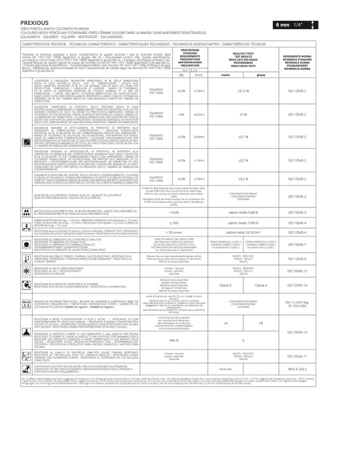 CARATTERISTICHE TECNICHE - TECHNICAL CHARACTERISTICS - CARACTERISTIQUES TECHNIQUES - TECHNISCHE EIGENSCHAFTEN - CARACTERÍSTICAS TÉCNICA