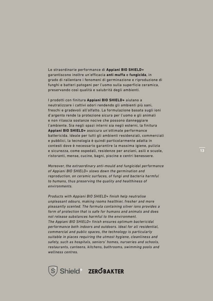 I prodotti con finitura Appiani BIO SHIELD+ aiutano a
