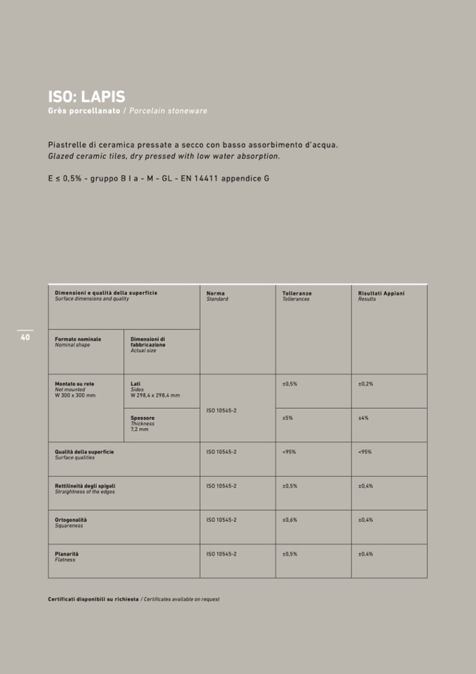 E ≤ 0,5% - gruppo B I a - M - GL - EN 14411 appendice G