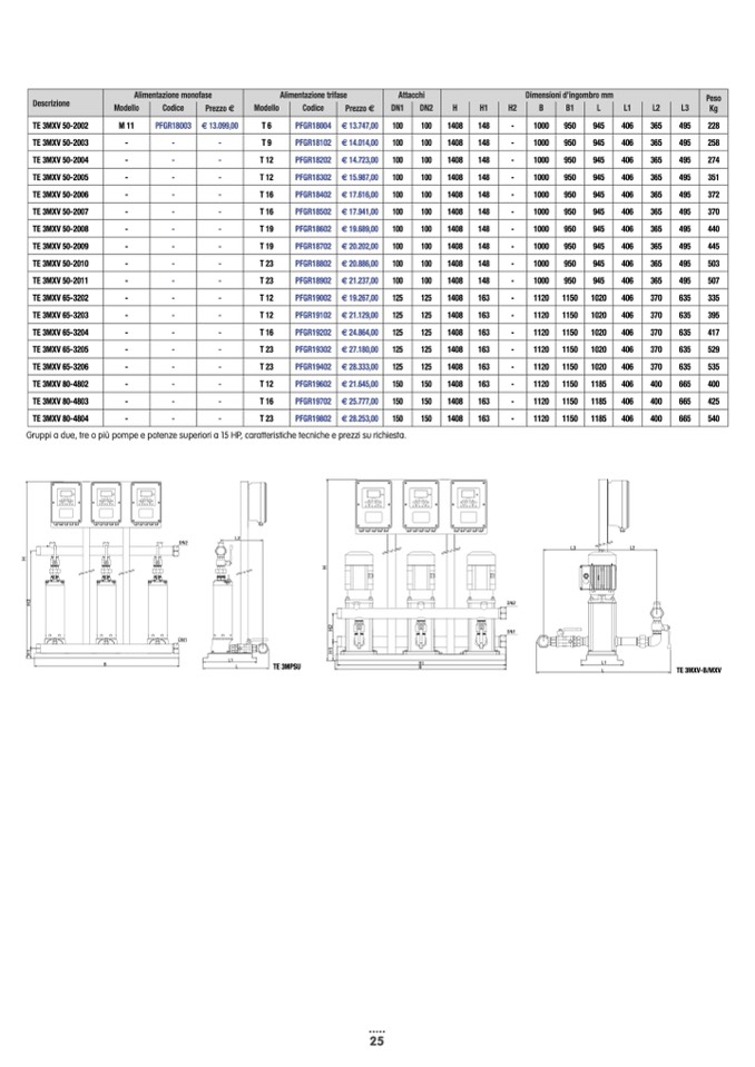 Gruppi a due, tre o più pompe e potenze superiori a 15 HP, caratteristiche tecniche e prezzi su richiesta.