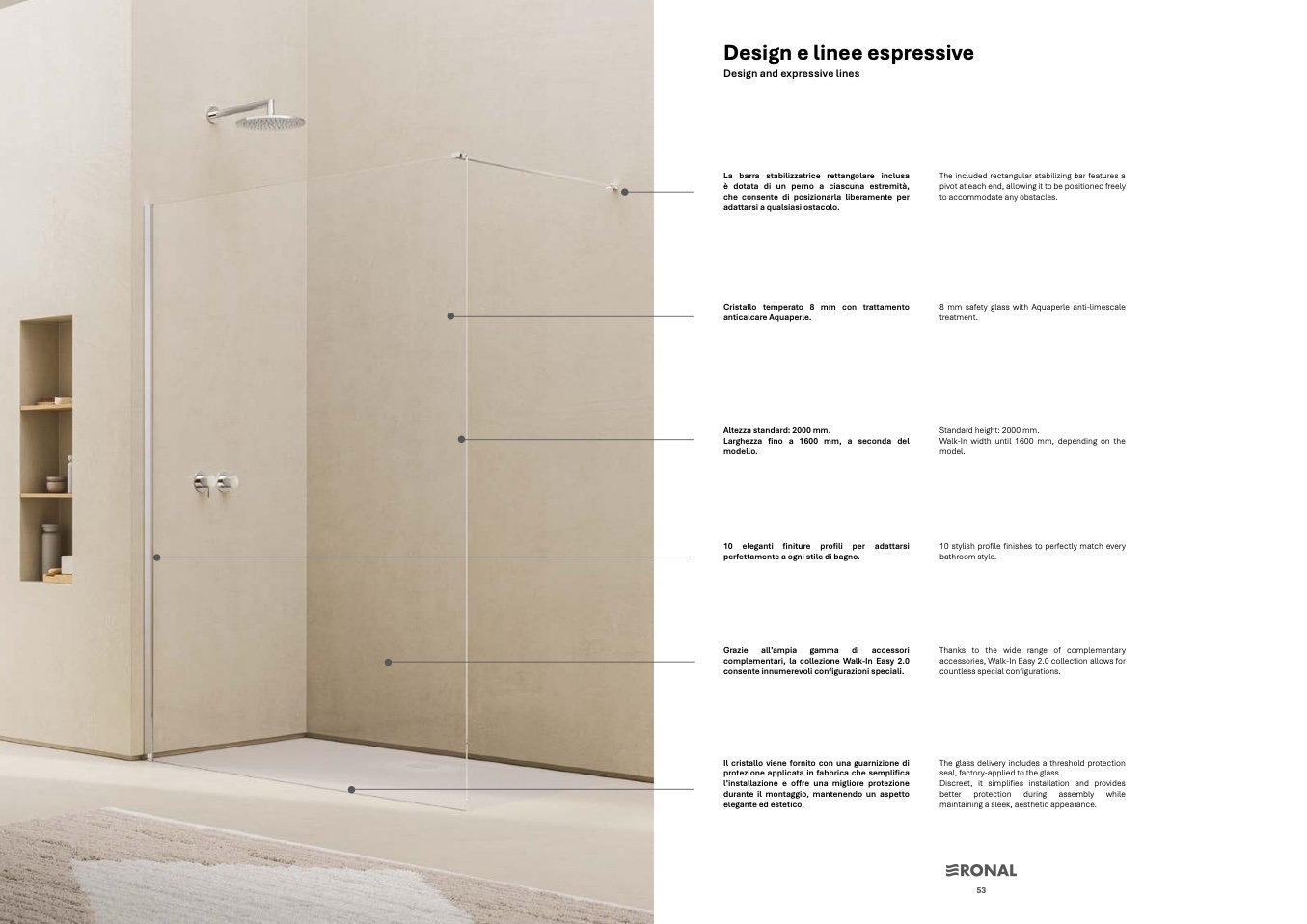 8 mm safety glass with Aquaperle anti-limescale