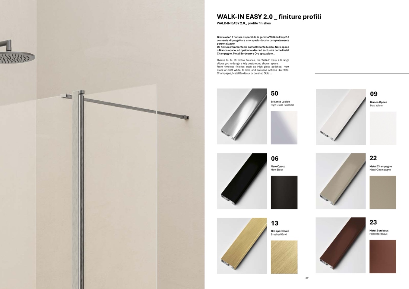 finiture disponibili, la gamma Walk-In Easy 2.0
