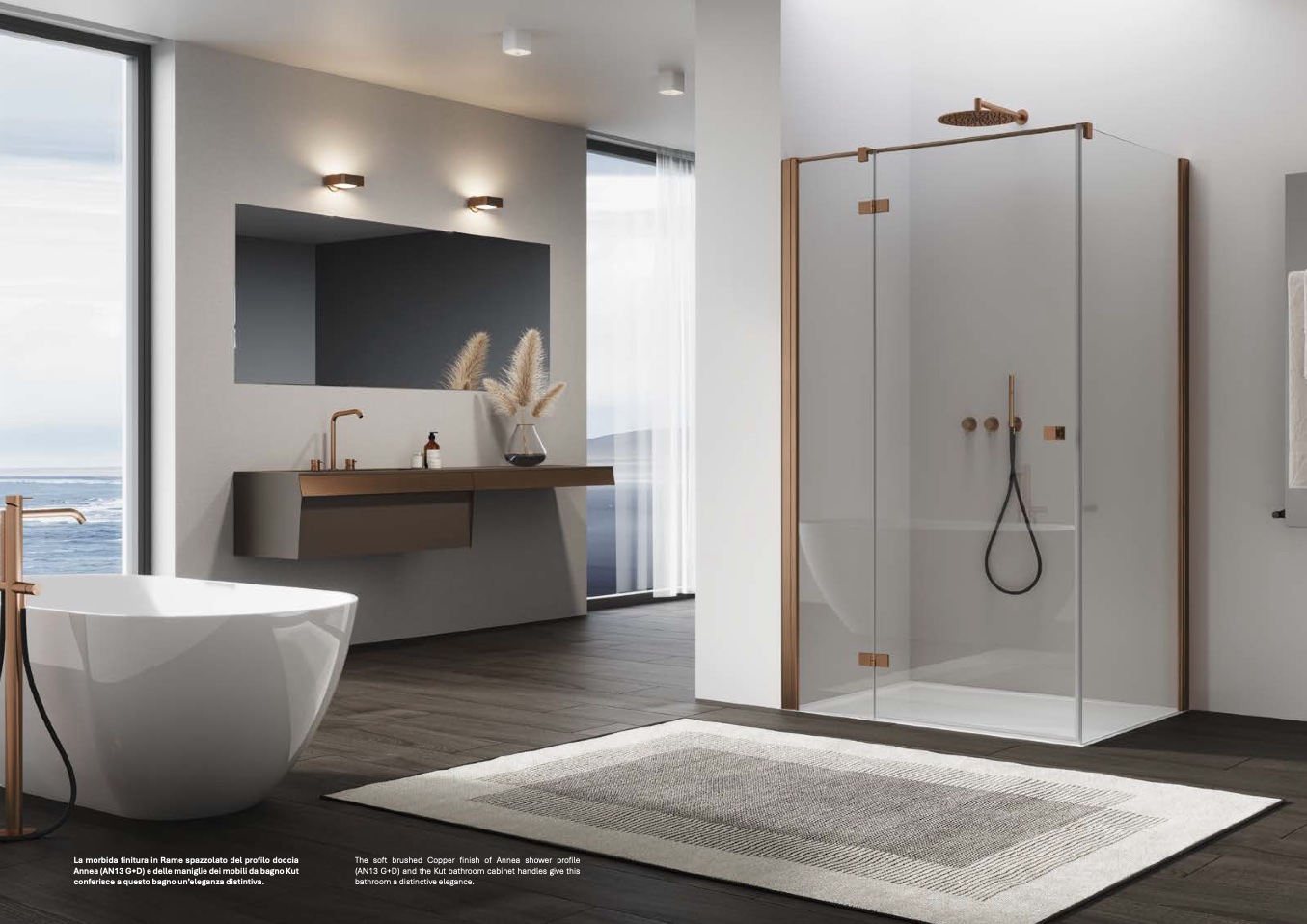 finitura in Rame spazzolato del profilo docci