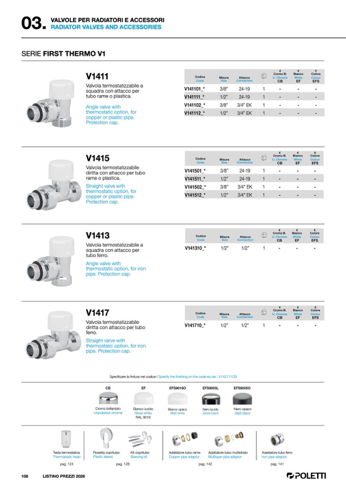 finitura nel codice / Specify the finishing on the code es./ex.: V142111CB