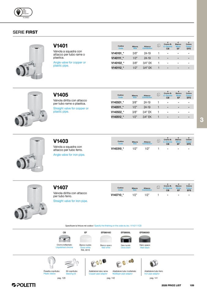 finitura nel codice / Specify the finishing on the code es./ex.: V142111CB