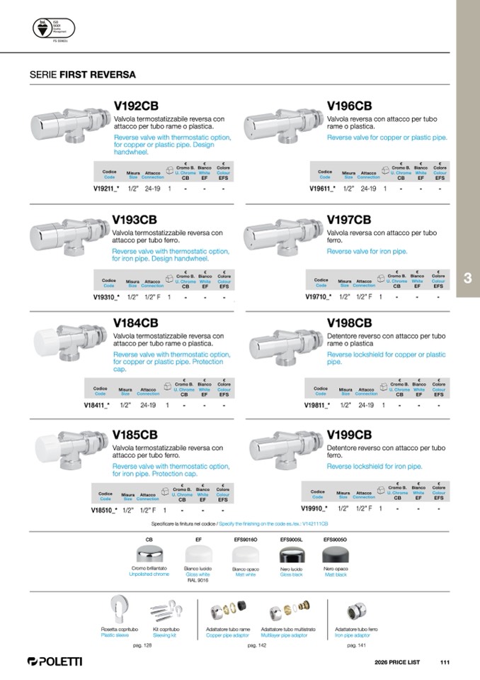 finitura nel codice / Specify the finishing on the code es./ex.: V142111CB
