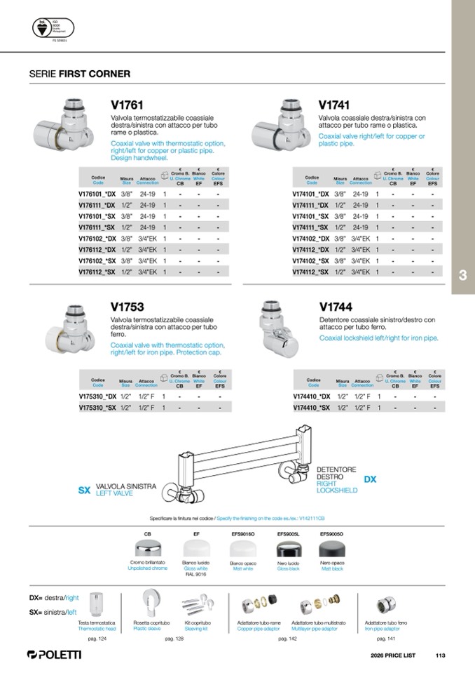 finitura nel codice / Specify the finishing on the code es./ex.: V142111CB