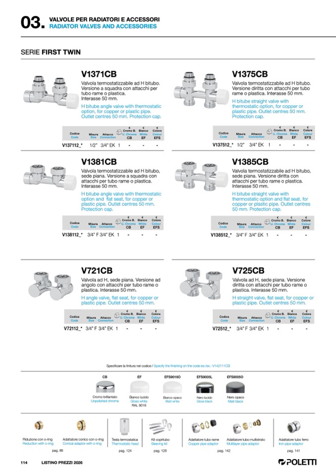 finitura nel codice / Specify the finishing on the code es./ex.: V142111CB