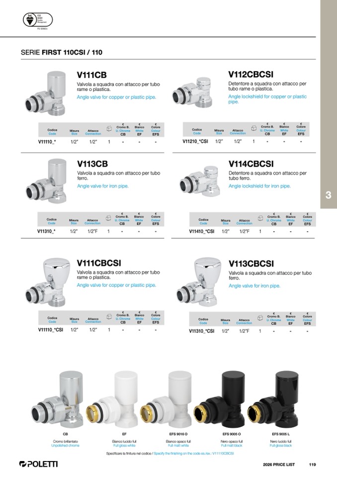 finitura nel codice / Specify the finishing on the code es./ex.: V11110CBCS