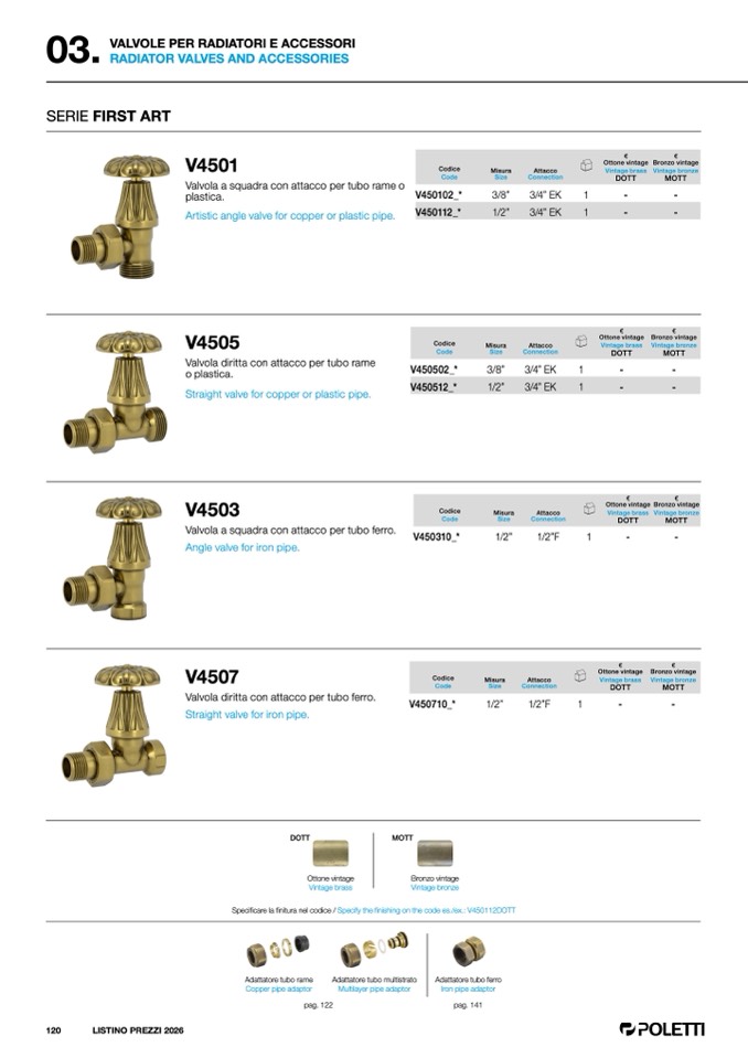 finitura nel codice / Specify the finishing on the code es./ex.: V450112DOTT