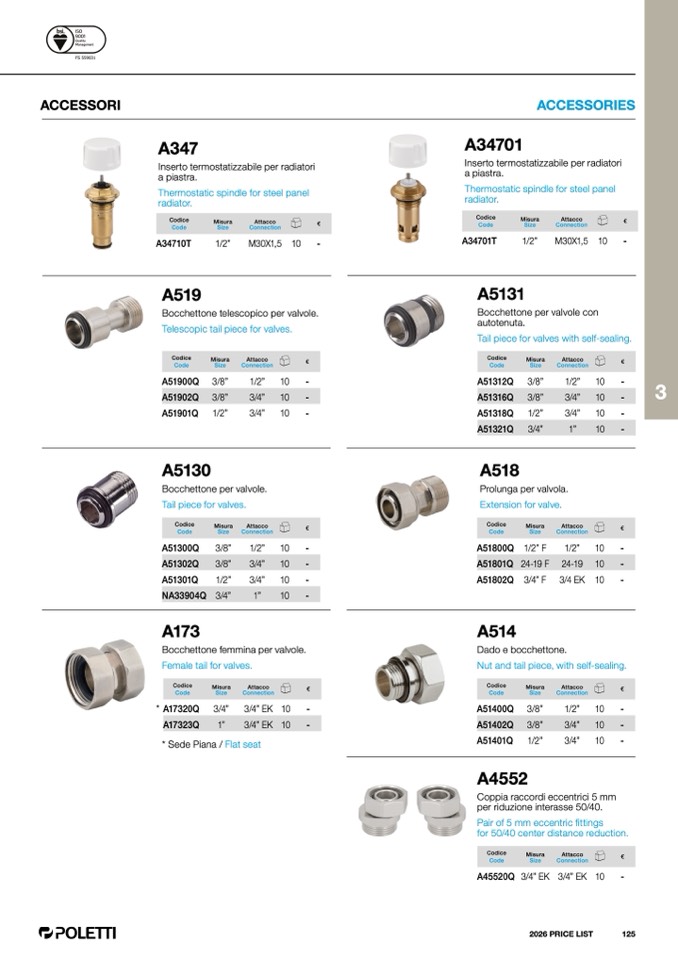 Bocchettone per valvole