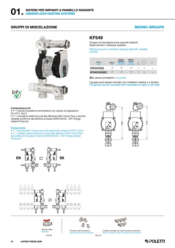 • n° 1 thermostatic mixing valve with adjustment range 20-43°C, Kv2,5