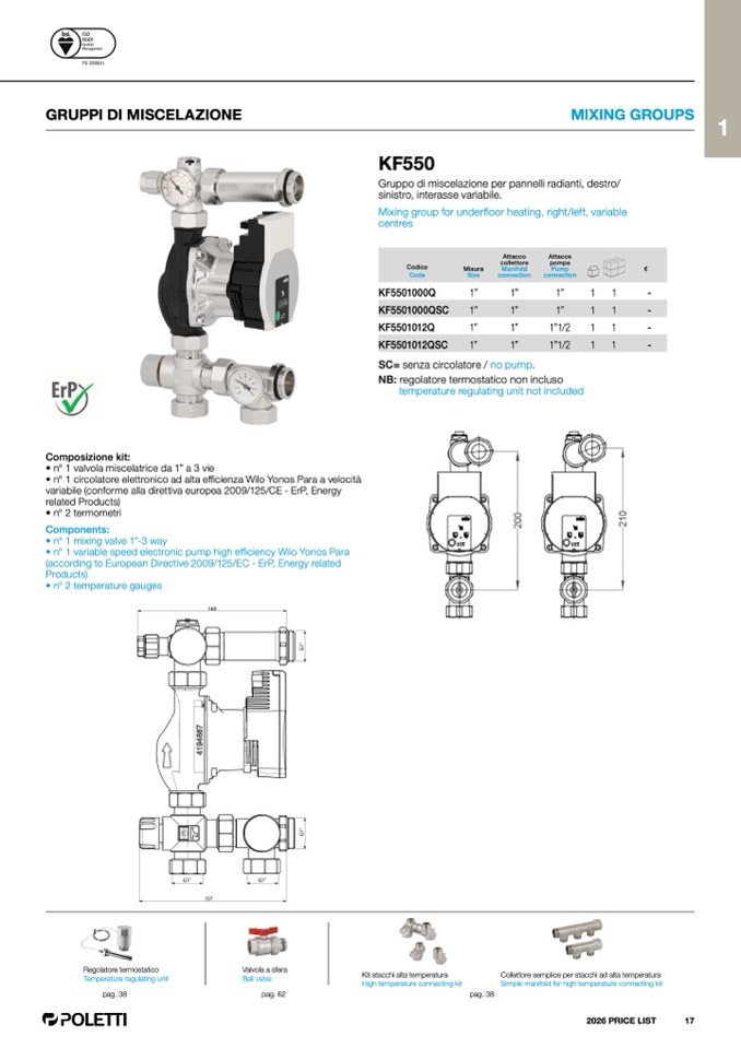 • n° 1 valvola miscelatrice da 1” a 3 vie