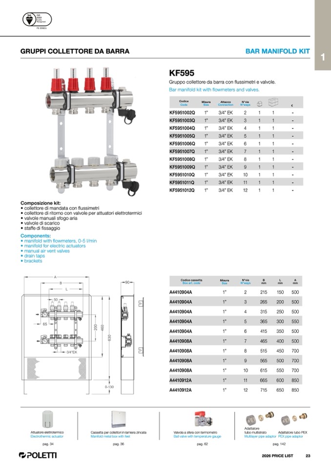 • collettore di ritorno con valvole per attuatori elettrotermici