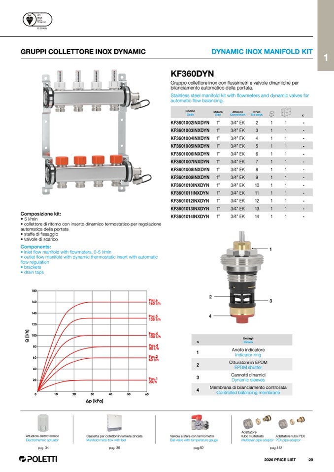 • collettore di ritorno con inserto dinamico termostatico per regolazione