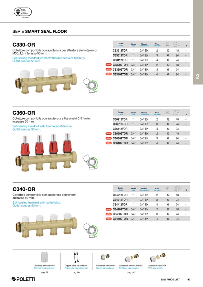 Collettore componibile con autotenuta per attuatore elettrotermico
