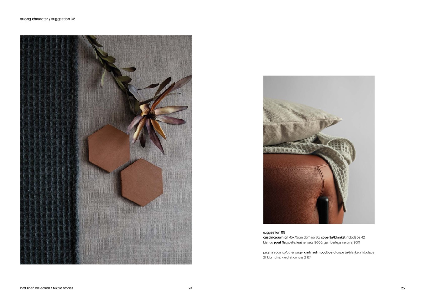 pagina accanto/other page: dark red moodboard coperta/blanket nidodape