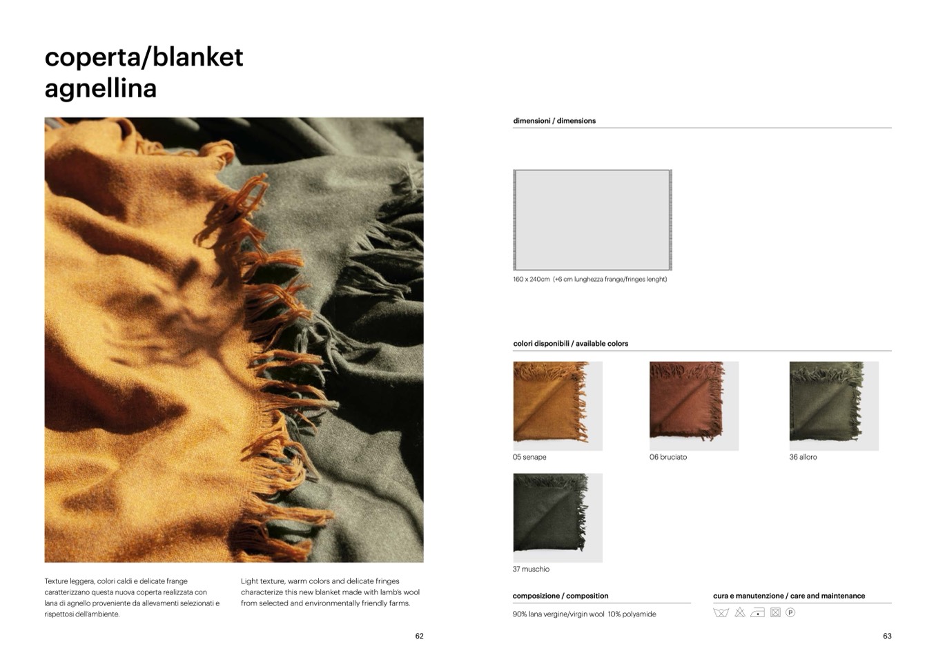 160 x 240cm (+6 cm lunghezza frange/fringes lenght)