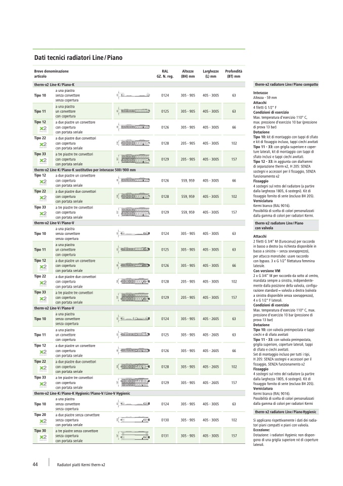 Dati tecnici radiatori Line / Piano