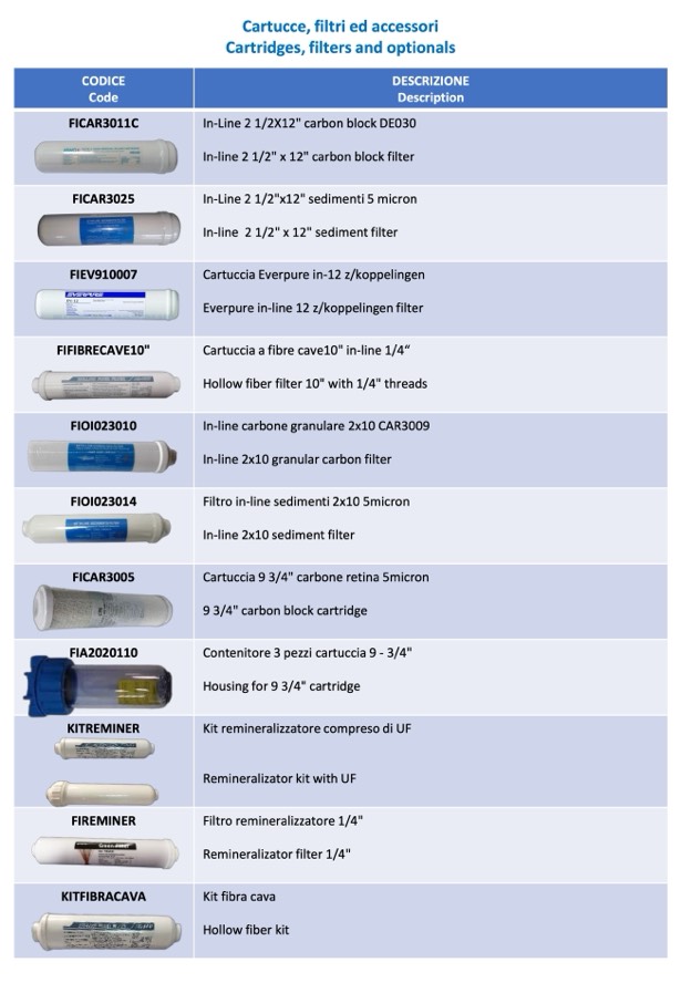 Kit remineralizzatore compreso di UF