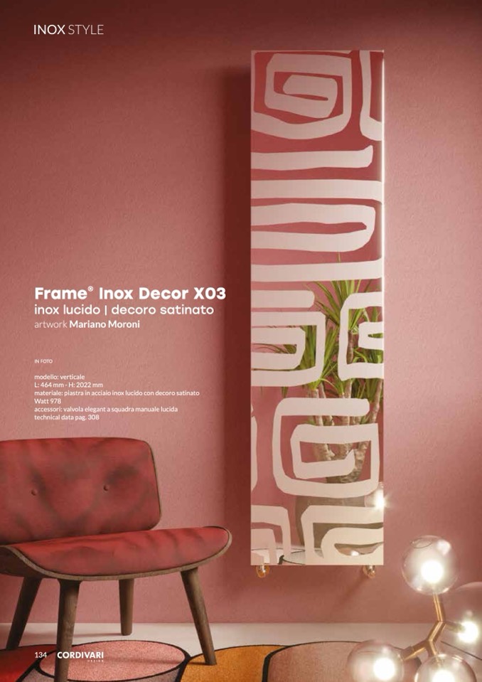 materiale: piastra in acciaio inox lucido con decoro satinato