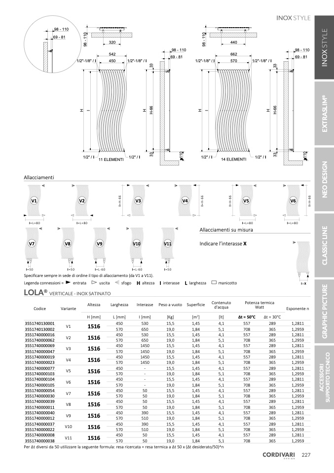 Per Δt diversi da 50 utilizzare la seguente formula: resa ricercata = resa termica a Δt 50 x (Δt desiderato/50)^n