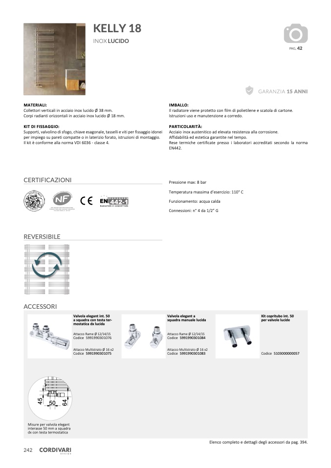 Collettori verticali in acciaio inox lucido Ø 38 mm.