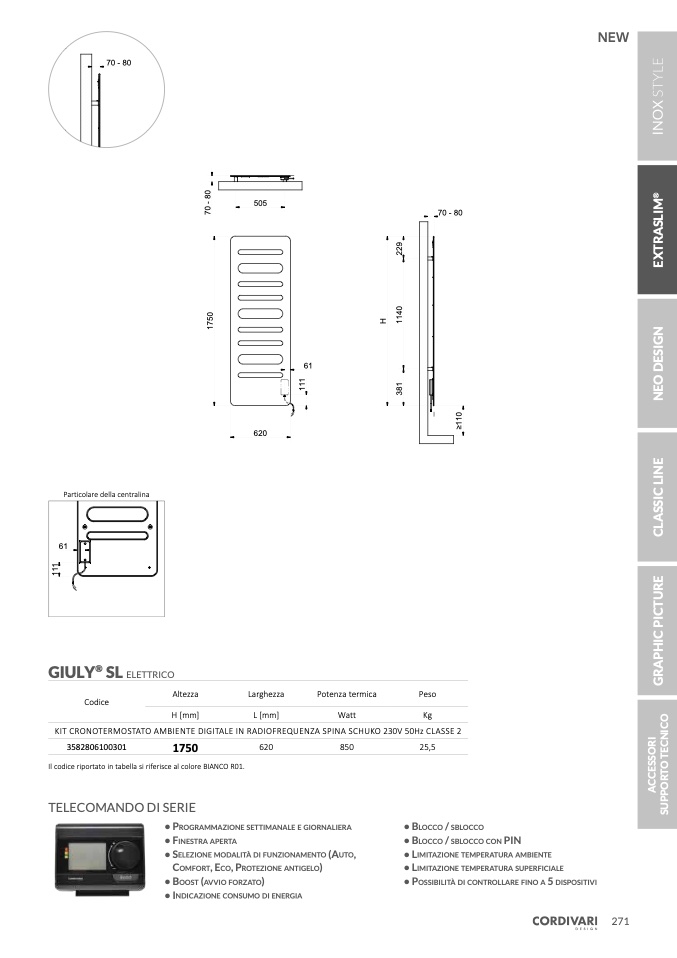 KIT CRONOTERMOSTATO AMBIENTE DIGITALE IN RADIOFREQUENZA SPINA SCHUKO 230V 50Hz CLASSE 2