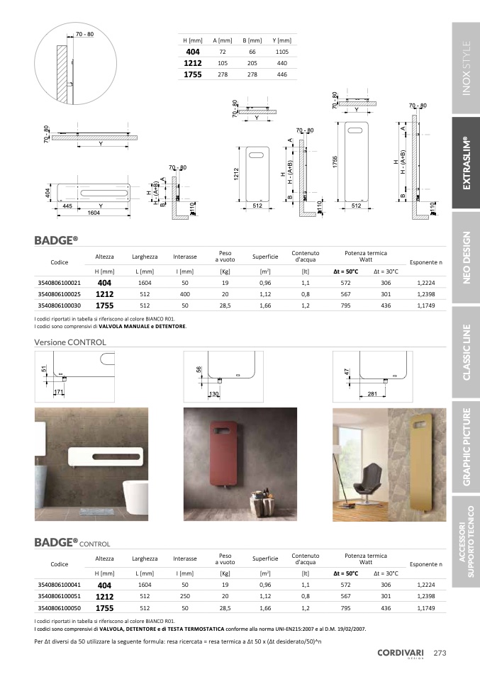 I codici sono comprensivi di VALVOLA, DETENTORE e di TESTA TERMOSTATICA conforme alla norma UNI-EN215:2007 e al D.M. 19/02/2007.
