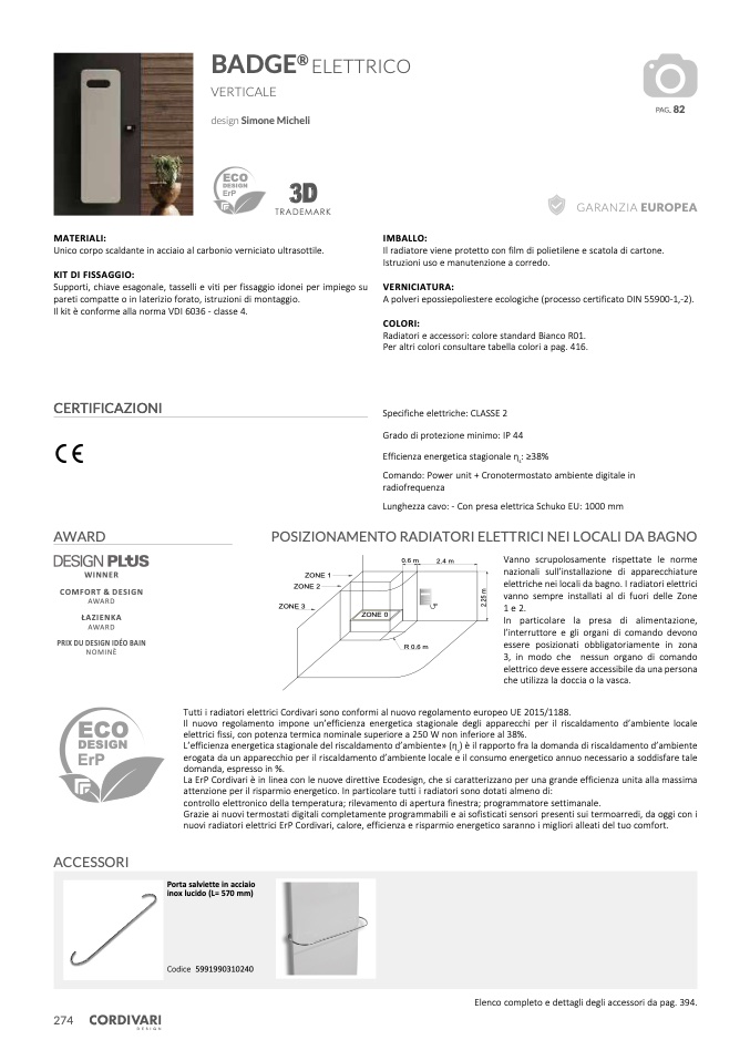 Tutti i radiatori elettrici Cordivari sono conformi al nuovo regolamento europeo UE 2015/1188.