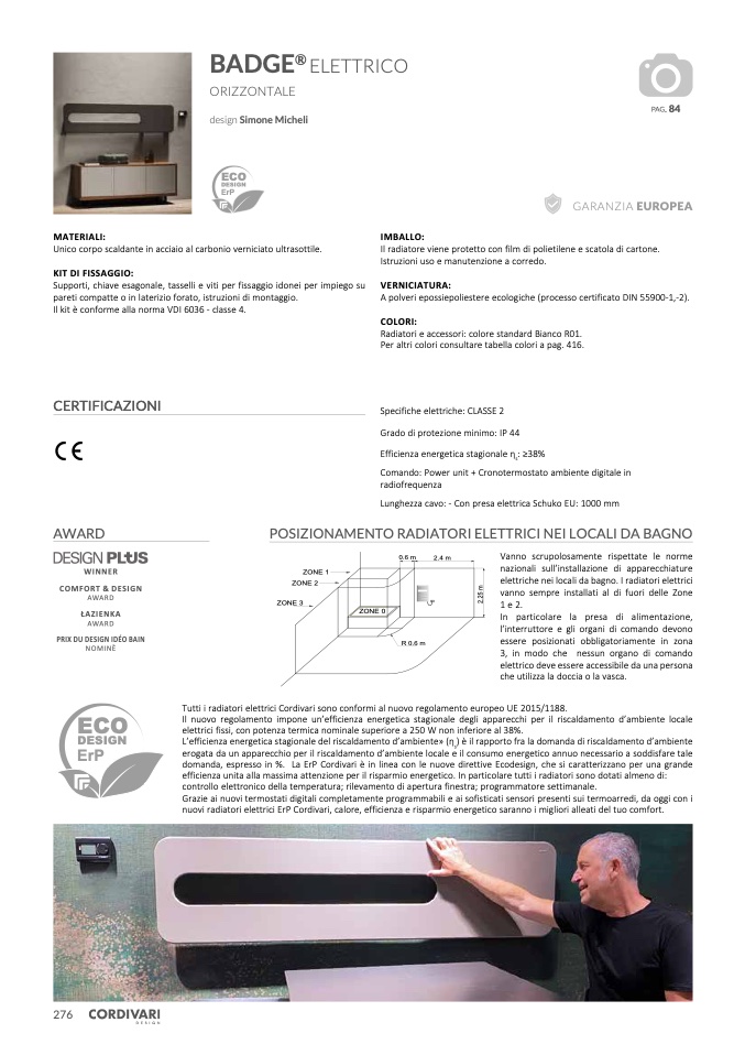 Tutti i radiatori elettrici Cordivari sono conformi al nuovo regolamento europeo UE 2015/1188.