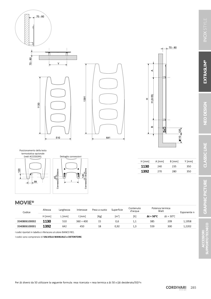 Per Δt diversi da 50 utilizzare la seguente formula: resa ricercata = resa termica a Δt 50 x (Δt desiderato/50)^n