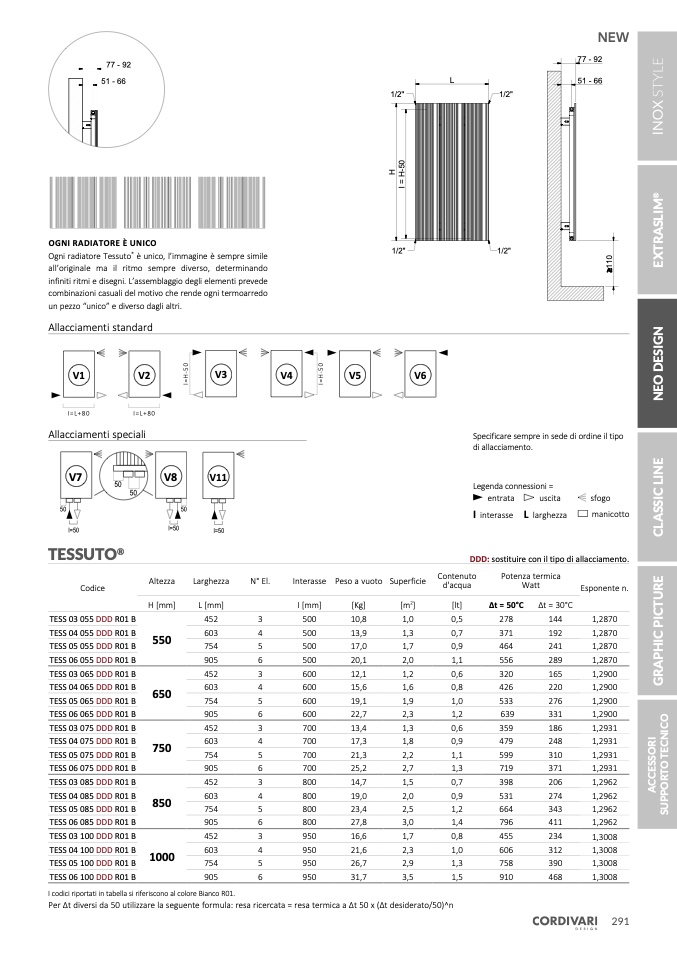 Per Δt diversi da 50 utilizzare la seguente formula: resa ricercata = resa termica a Δt 50 x (Δt desiderato/50)^n