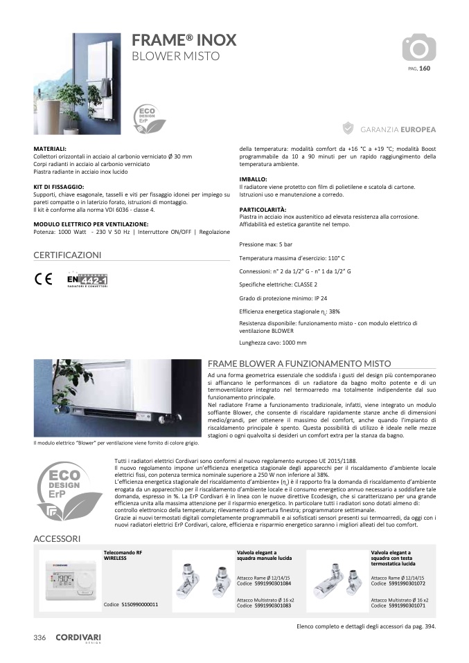 Tutti i radiatori elettrici Cordivari sono conformi al nuovo regolamento europeo UE 2015/1188.