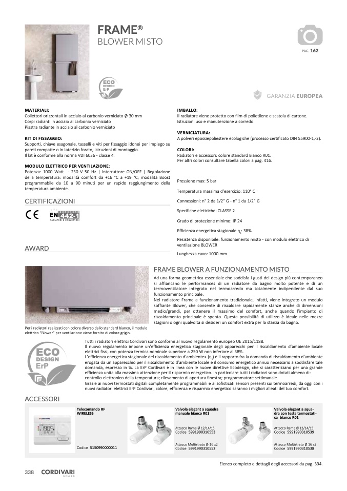 Tutti i radiatori elettrici Cordivari sono conformi al nuovo regolamento europeo UE 2015/1188.