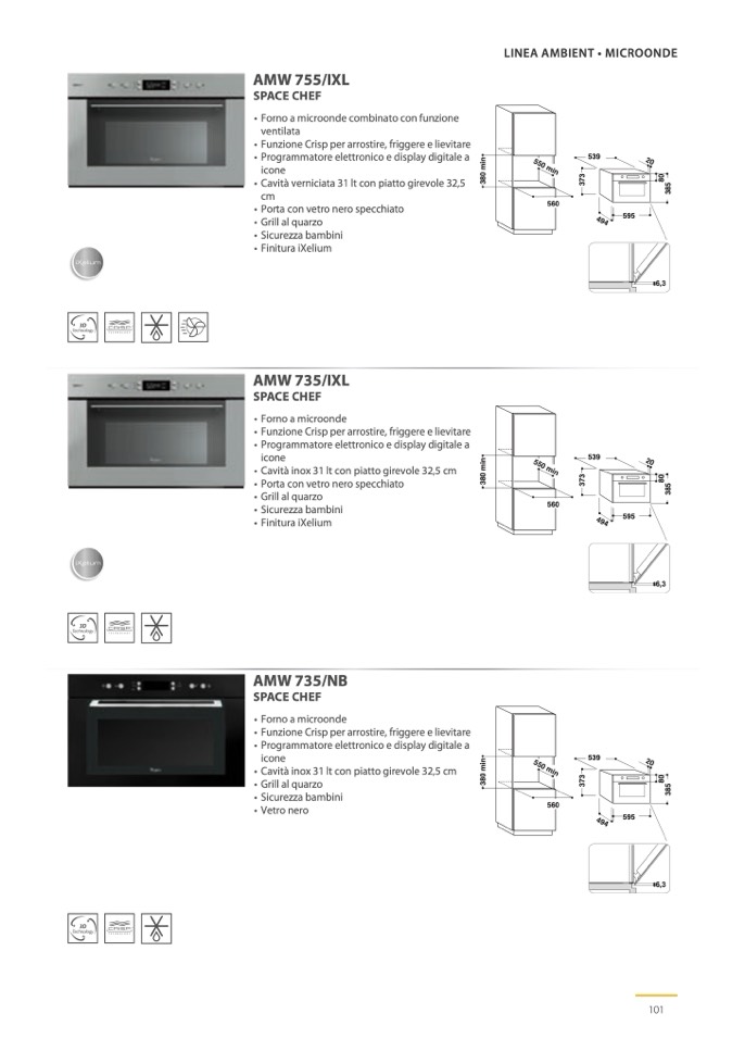 • Cavità inox 31 lt con piatto girevole 32,5 cm