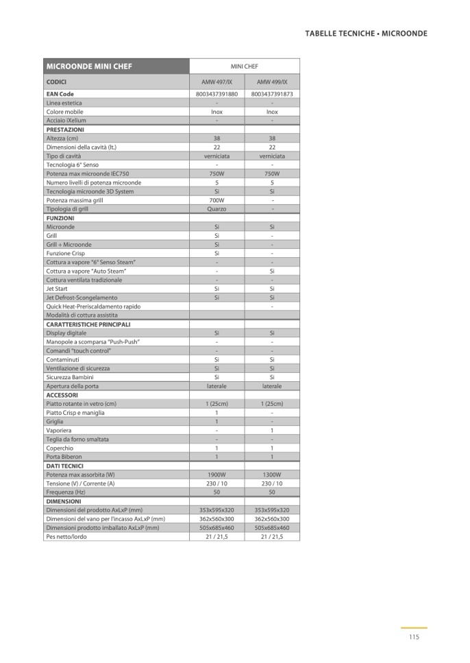 Numero livelli di potenza microonde