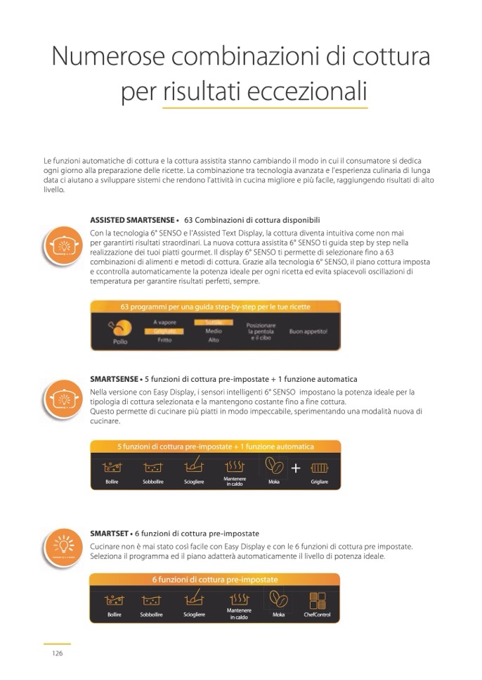 combinazioni di alimenti e metodi di cottura. Grazie alla tecnologia 6° SENSO, il piano cottura imposta