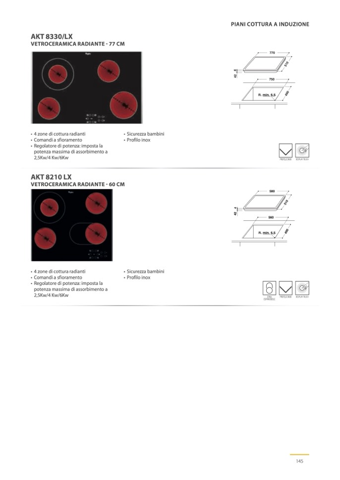 • 4 zone di cottura radianti