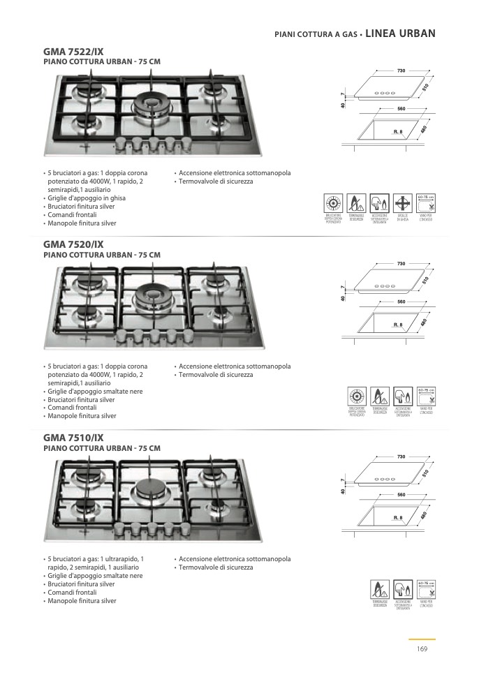 • 5 bruciatori a gas: 1 ultrarapido, 1