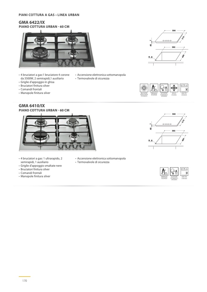 • 4 bruciatori a gas:1 bruciatore 4 corone