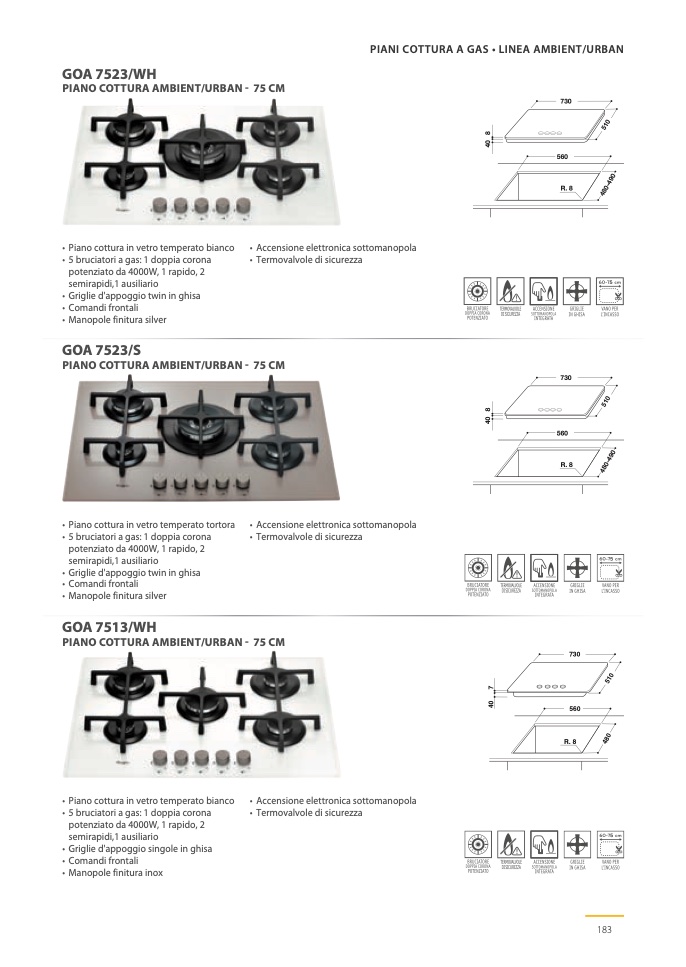 • Piano cottura in vetro temperato bianco