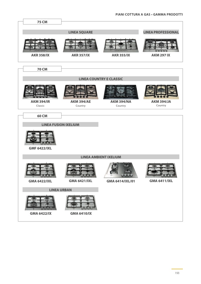 PIANI COTTURA A GAS • GAMMA PRODOTTI