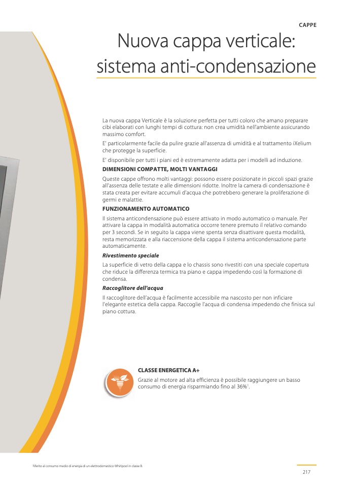 l’elegante estetica della cappa. Raccoglie l'acqua di condensa impedendo che finisca sul