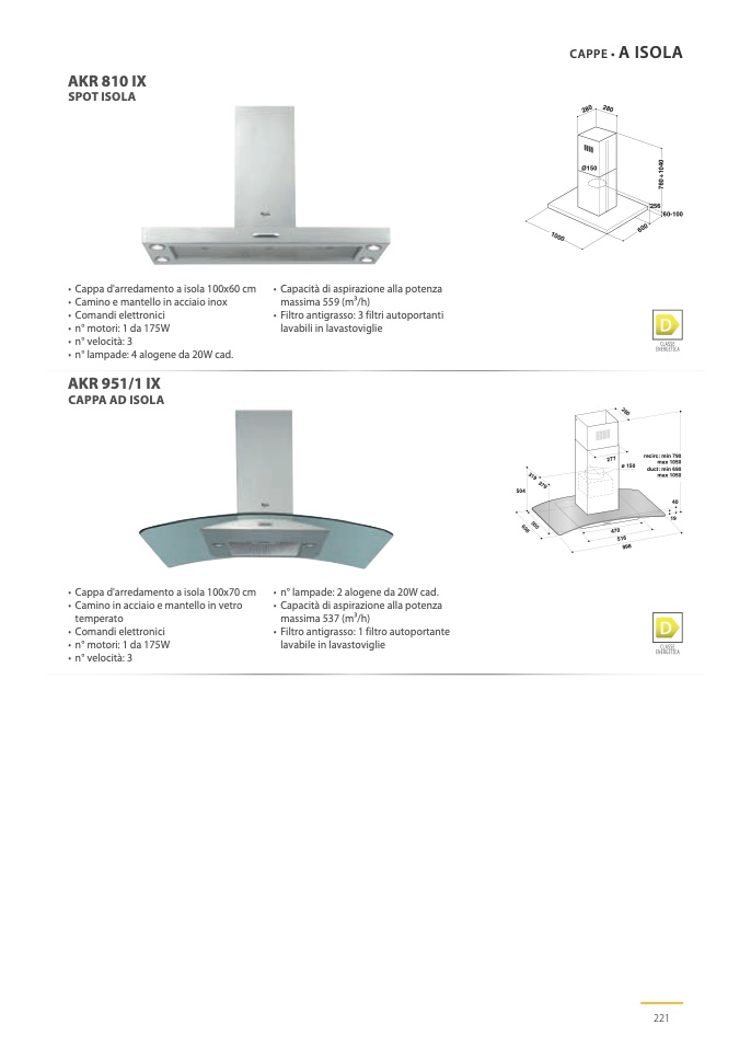 • Cappa d'arredamento a isola 100x70 cm