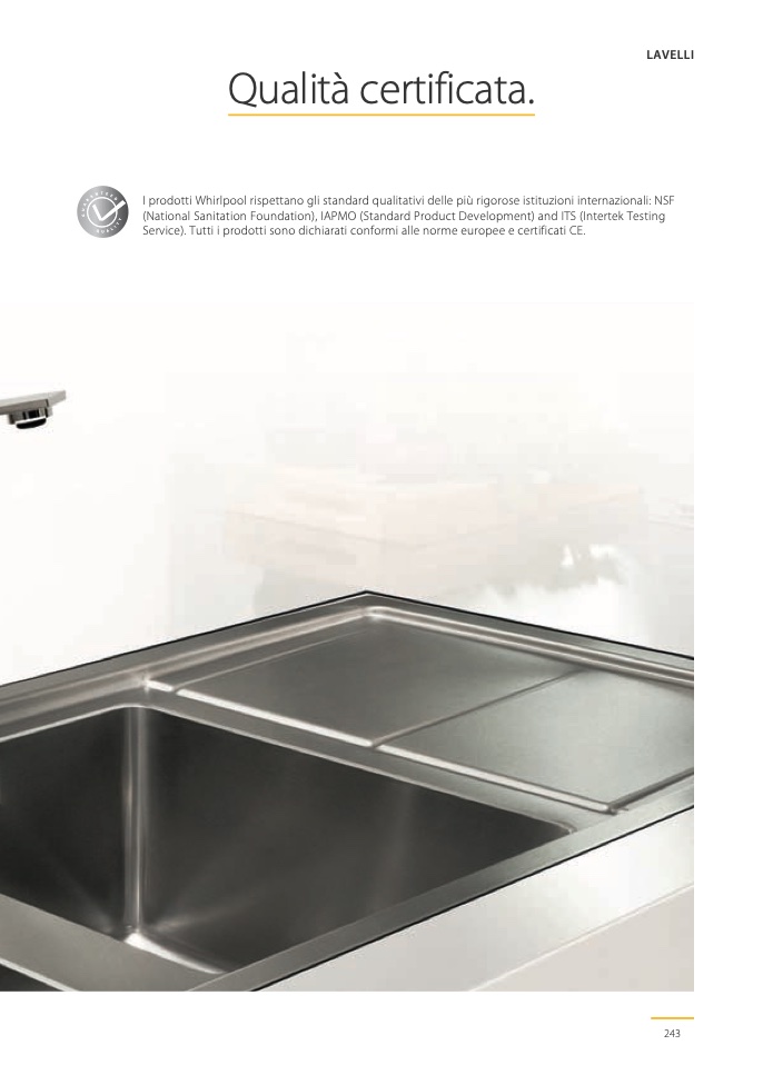I prodotti Whirlpool rispettano gli standard qualitativi delle più rigorose istituzioni internazionali: NSF