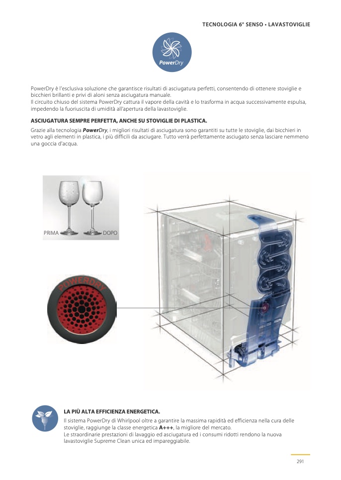PowerDry è l’esclusiva soluzione che garantisce risultati di asciugatura perfetti, consentendo di ottenere stoviglie e