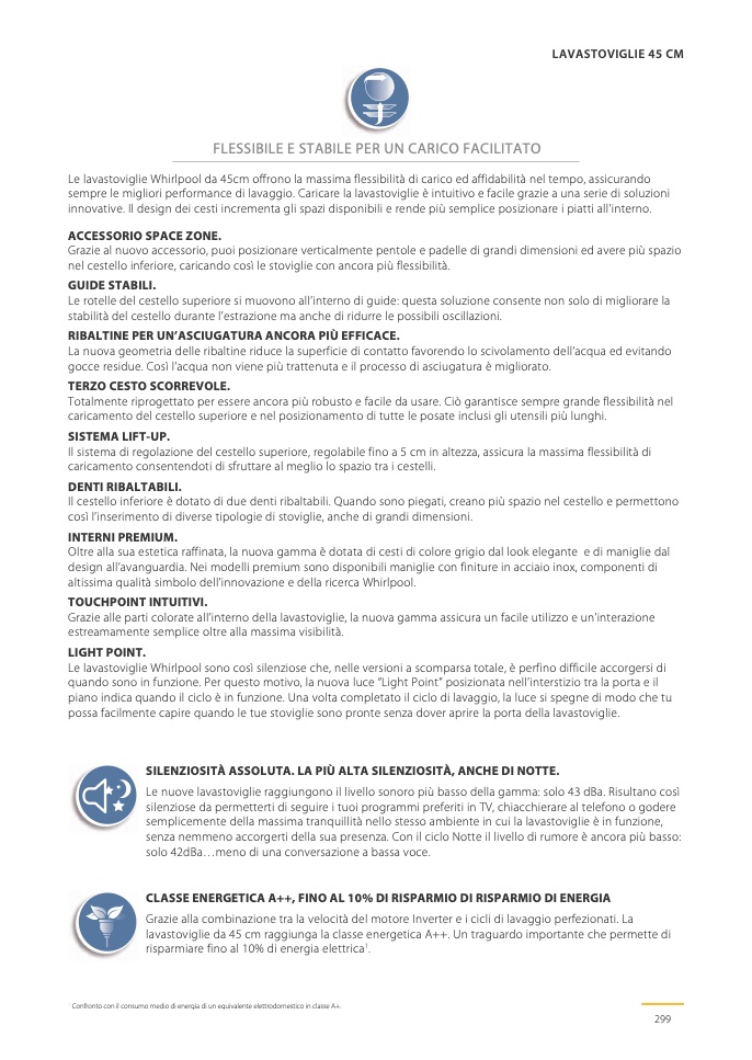 lavastoviglie da 45 cm raggiunga la classe energetica A++. Un traguardo importante che permette di