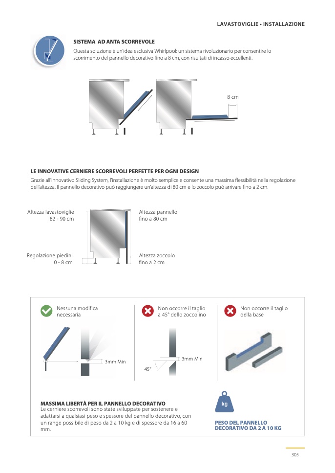 scorrimento del pannello decorativo fino a 8 cm, con risultati di incasso eccellenti.