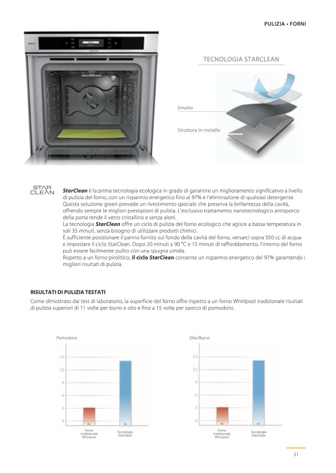 di pulizia del forno, con un risparmio energetico fino al 97% e l'eliminazione di qualsiasi detergente.